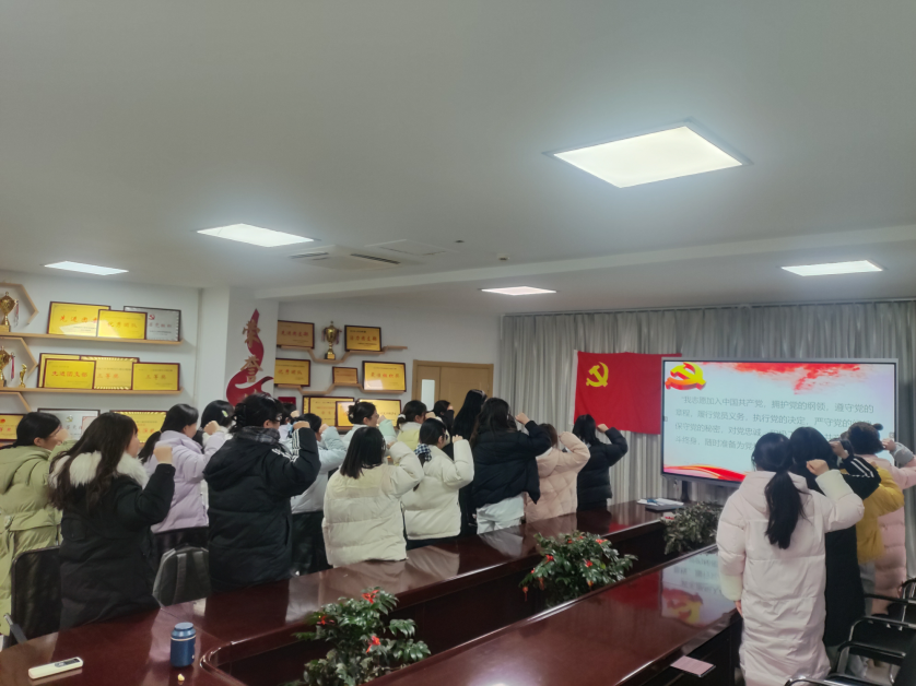 宣誓仪式在嘹亮的《国际歌》中正式开始。新党员高举右臂,紧握右拳,面对鲜红的党旗郑重宣誓:“我志愿加入中国共产党……”誓言铿锵有力,表达了为共产主义奋斗终身、永葆党员先进性的坚定信念。