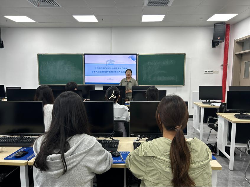 党课伊始,李老师从讲话中“中国人民抗日战争是艰苦卓绝的伟大战争”这一论断切入,结合大量历史史料,详细讲解了抗战时期中国人民在艰难困苦中浴血奋战的英雄事迹,深刻阐释了“中华民族伟大复兴不可阻挡,人类和平与发展崇高事业必将胜利”的时代意义。