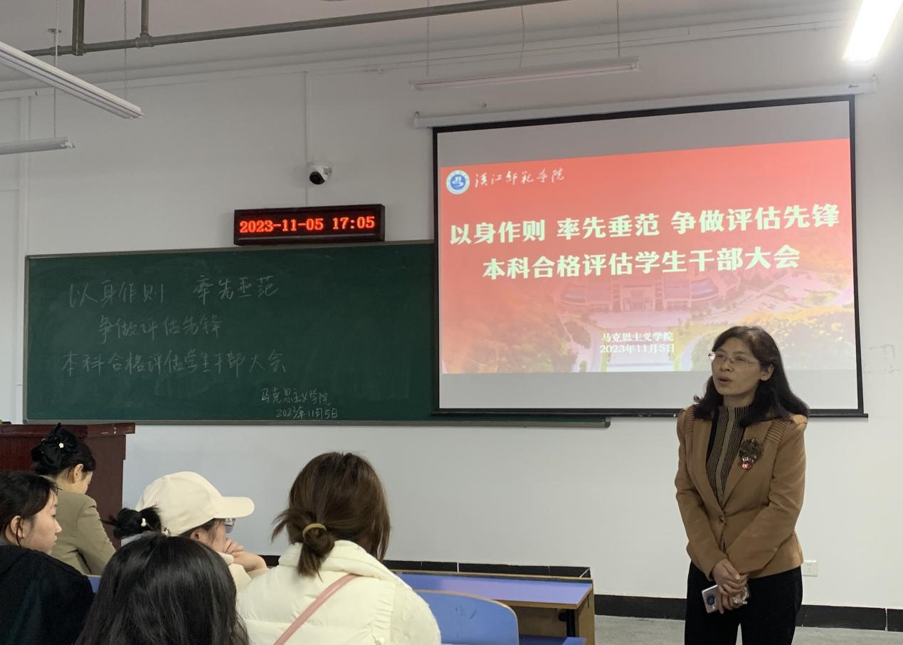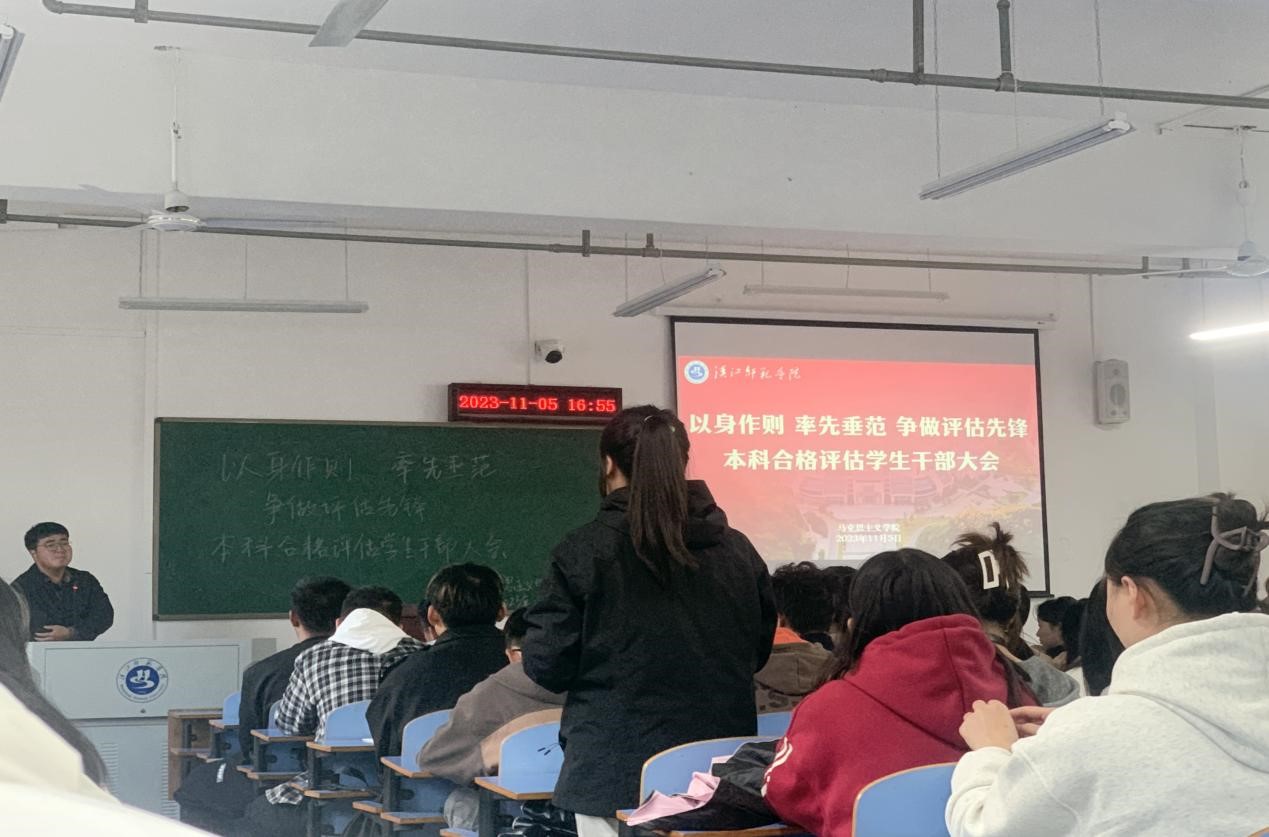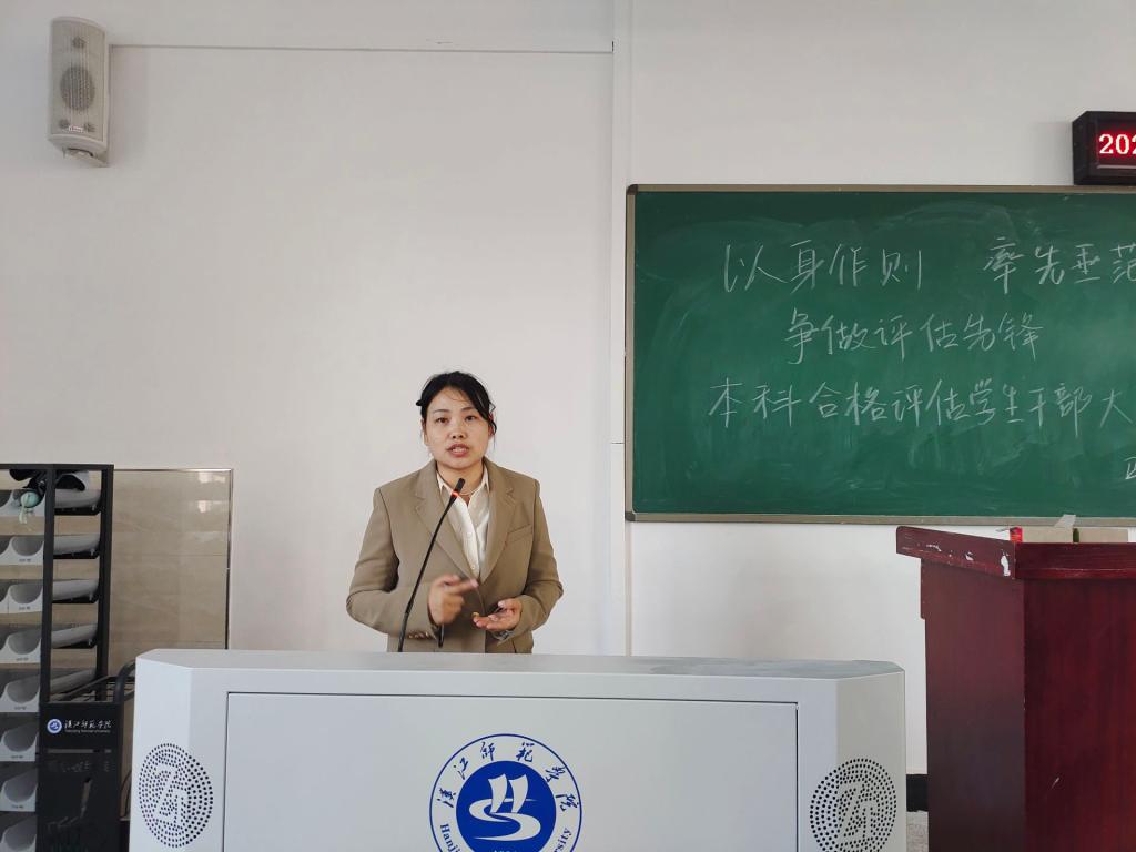 分党委书记王襄渝首先肯定了同学们在评估准备工作中的表现,同时强调了评估的重要性和紧迫性,希望同学们加强与老师的交流与讨论,积极帮助同学、团结同学,发挥员工与老师的桥梁作用。她强调,全体员工干部要把小我融入大我,在关键时刻树立大局意识,积极发现问题并解决潜在问题,共同迎接合格评估的到来。
