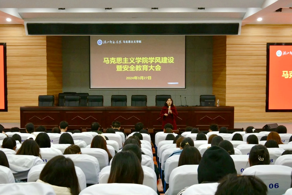 会上,分党委书记王襄渝就当前学风建设和安全方面存在的问题进行了梳理,结合实际案例强调了安全的重要性。她表示,所有同学要严格遵守宿舍管理规定等校级校规,在参加课外活动时,切勿因一时兴起而忽视自身安全。要时刻提高安全意识,杜绝晚归等不安全行为。
