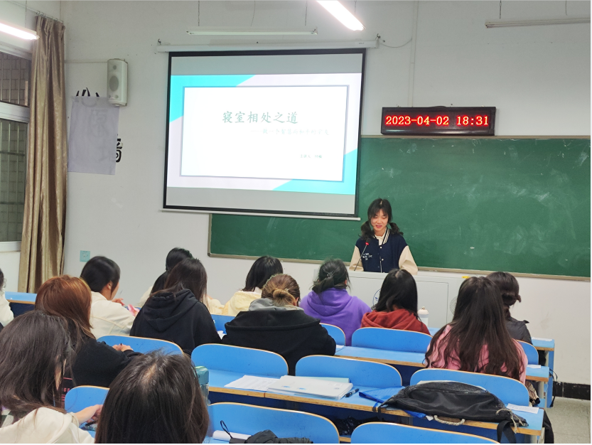 4月2日晚上19:00,思政2202班付楠同学在崇文楼A314召开“宿舍相处之道”主题班会,分别从寝室关系、寝室为什么会有矛盾、有了矛盾怎么办、如何更好地促进沟通四个方面进行展开。