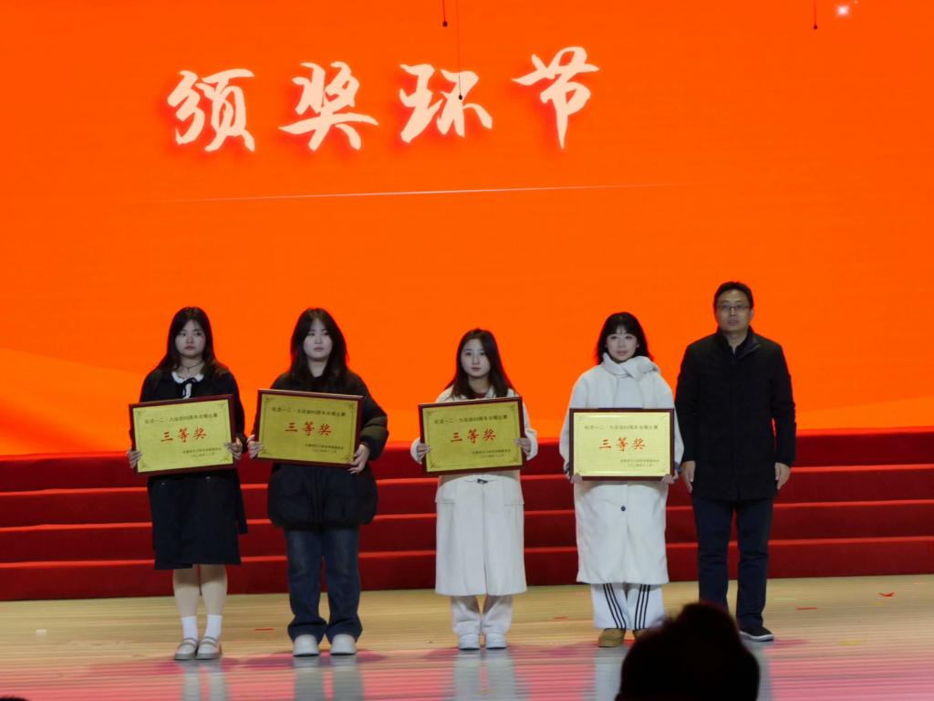 在本次比赛中,公司首先演唱了校歌《扬帆远航》,同学们用整齐嘹亮的歌声,唱出了对公司的热爱和赞美。校歌不仅是公司精神的象征,更是连接每一位学子的精神纽带。在一二·九这个特殊的日子里,校歌的演唱更增添了一份厚重的历史感和使命感。第二首演唱曲目为改编版的《南泥湾》,歌曲中融入笛声和鼓声,让曲风更加欢快,使其更契合当代青年的审美偏好,为听众缔造一场独一无二的视听盛宴。同学们以饱满的热情和精湛的演唱技巧,将这首经典歌曲演绎得淋漓尽致,既展现了革命先辈们艰苦奋斗的精神,又传递出新时代青年的创新与活力。