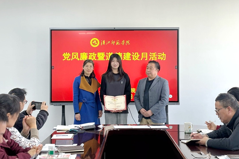 4月3日下午,在william威廉亚洲会议室召开的党风廉政暨道德建设月活动中,思政教育2401班杨心蕊同学因及时救助校内一车祸受伤老师,被授予“见义勇为先进个人”荣誉证书。