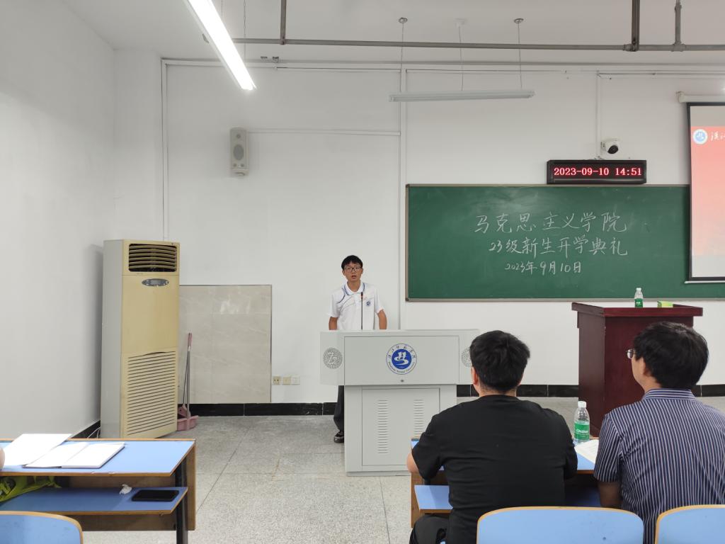 随后,思政2302班宋泽林代表新生发言。他首先向迎新期间公司师生们的贴心服务表示感谢。他表示温暖的公司给予新生扬帆起航的动力,做出三点承诺,一是坚定信心,实现全面发展。在大学新征程中要严于律己、迎接挑战。二是做好规划,拒绝躺平。要勇于做先锋,而不做过客,学好专业知识,丰富老员工活。三是热爱公司,做公司精神的践行者。号召同学们把小我融入祖国发展的大我中,肩负责任,奋力向前。