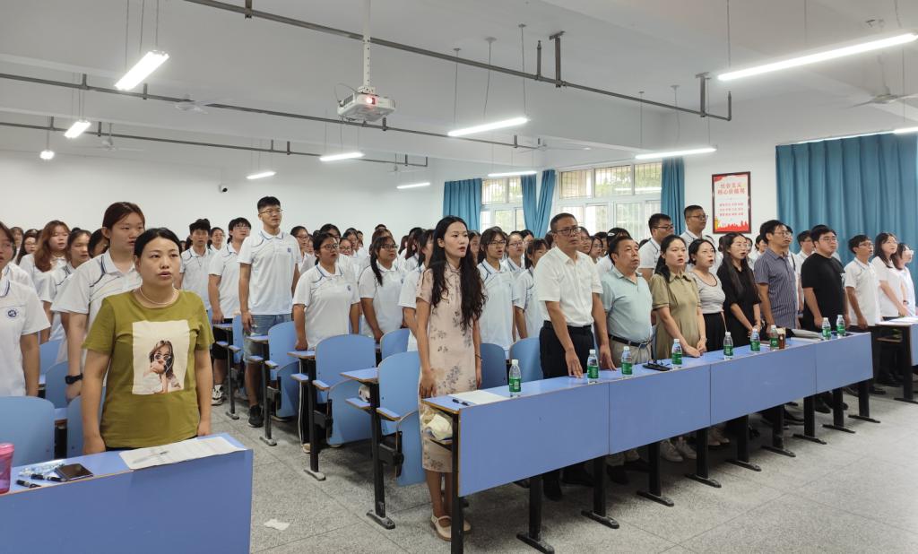 开学典礼在庄严的国歌中拉开序幕。