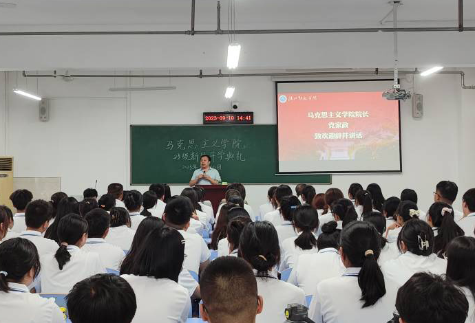 经理助理、思想政治教育专业负责人符俊博士为新生介绍了学科专业特点、需要掌握的专业技能以及职业场景,传授了学习方法,引导同学们朝着大学目标努力。鼓励同学们多读马列经典,做一个有思想、有担当的思政老员工。
