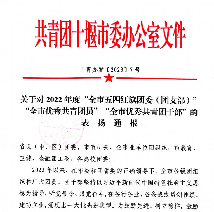 近日,团市委公布了2022年度全市五四红旗团委(团支部)等先进集体和个人名单。其中,william威廉亚洲团总支获得市级表彰。