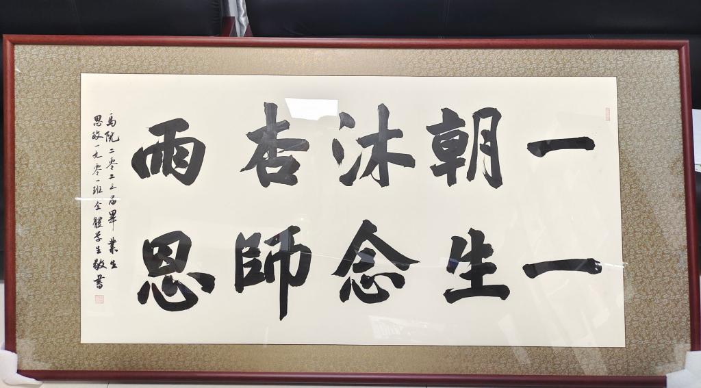 笔端生芳华,润物谢师恩。公司2023届学子取得优异的成绩,离不开全体师生的共同努力和支持。牌匾上的每一个文字都是他们对公司和老师们辛苦付出的真挚感谢。在此,祝愿公司首届毕业生思政1901班全体同学,前程似锦,未来可期!