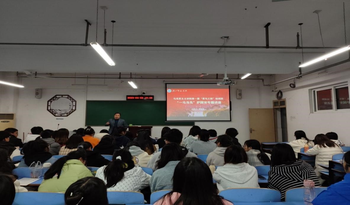 为深入学习宣传总体国家安全观,守牢安全底线。公司于4月23日晚在文A313举行“一马当先”护国安系列活动之《坚持总体国家安全观,筑牢国家安全保障》专题讲座。讲座由公司经理党家政主讲,公司青马班成员、员工支部全体党员参加培训。