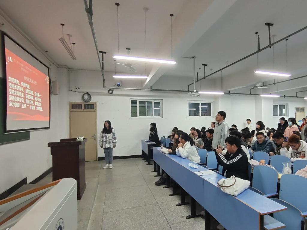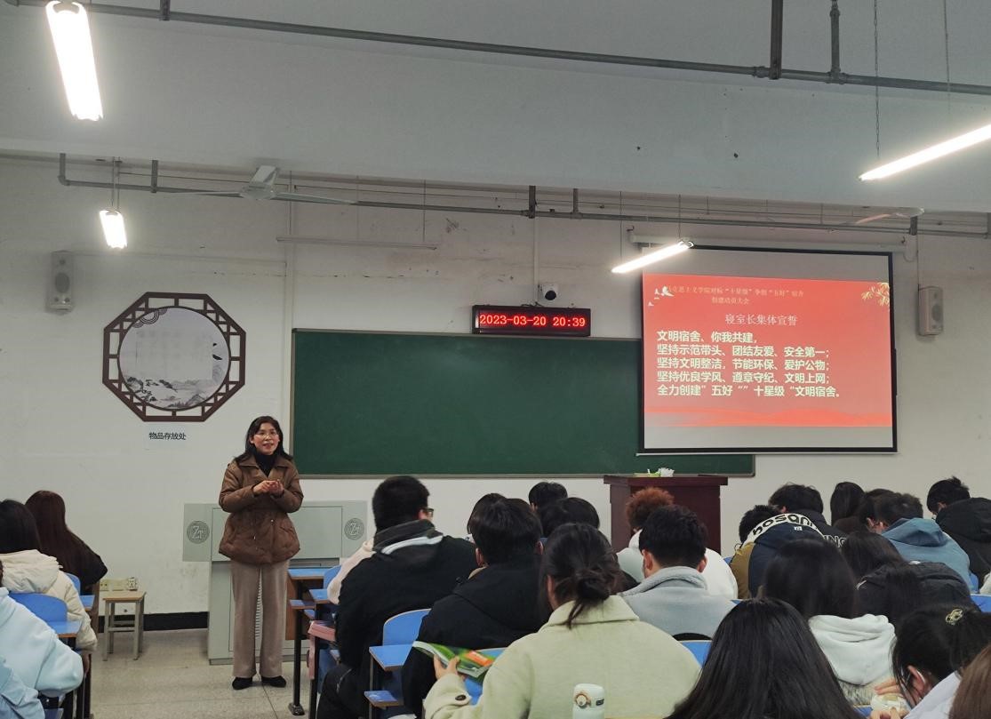 最后,2022年十星级文明宿舍寝室长徐瑞雯领读,全院寝室长集中宣读《william威廉亚洲文明宿舍创建誓词》,带头承诺,积极创建。