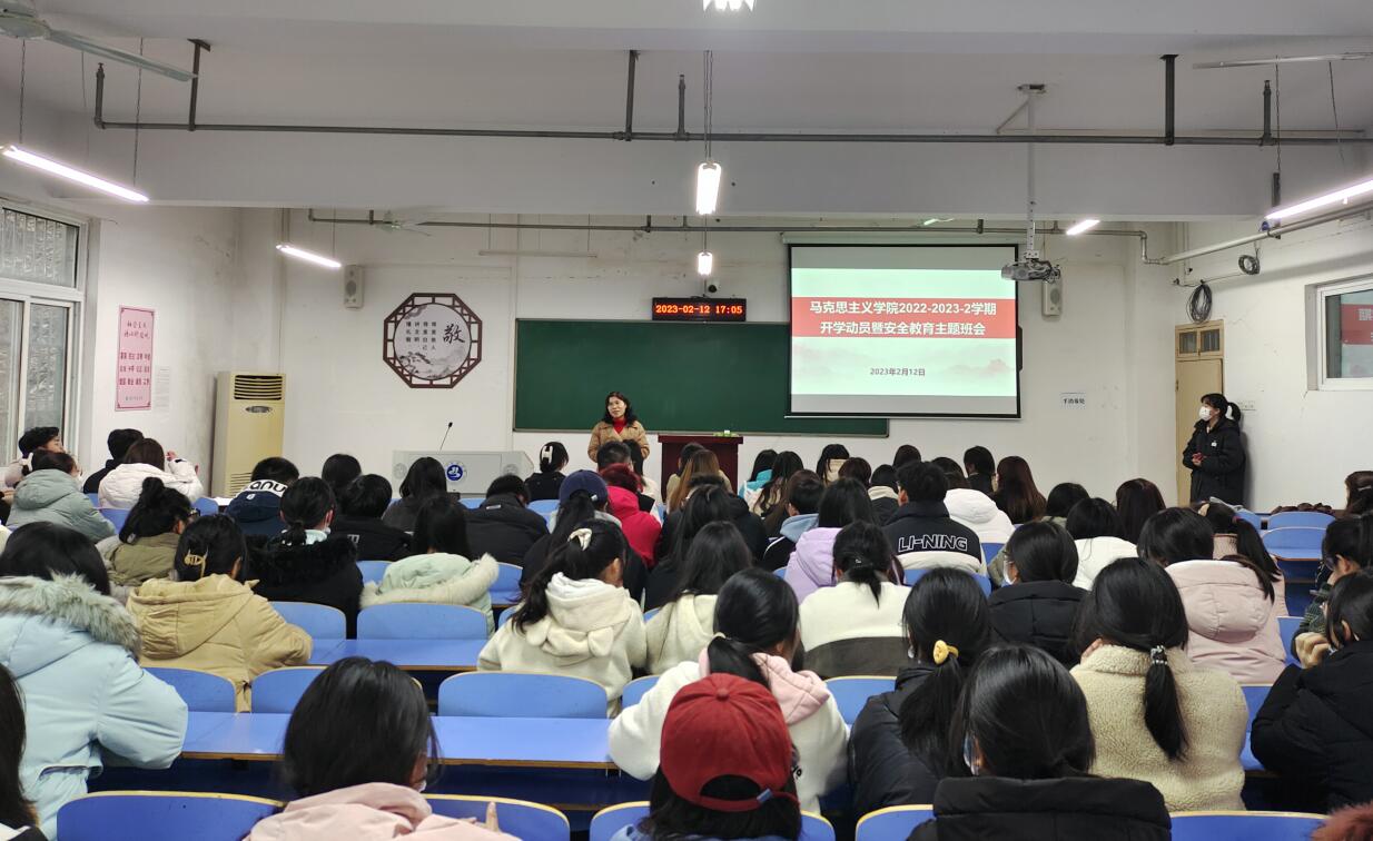 2月12日下午5:00,william威廉亚洲在崇文楼A313教室召开新学期动员暨安全教育主题班会,公司党总支书记王襄渝、班主任、辅导员以及全体22级员工参会。会议由辅导员朱德宇主持。