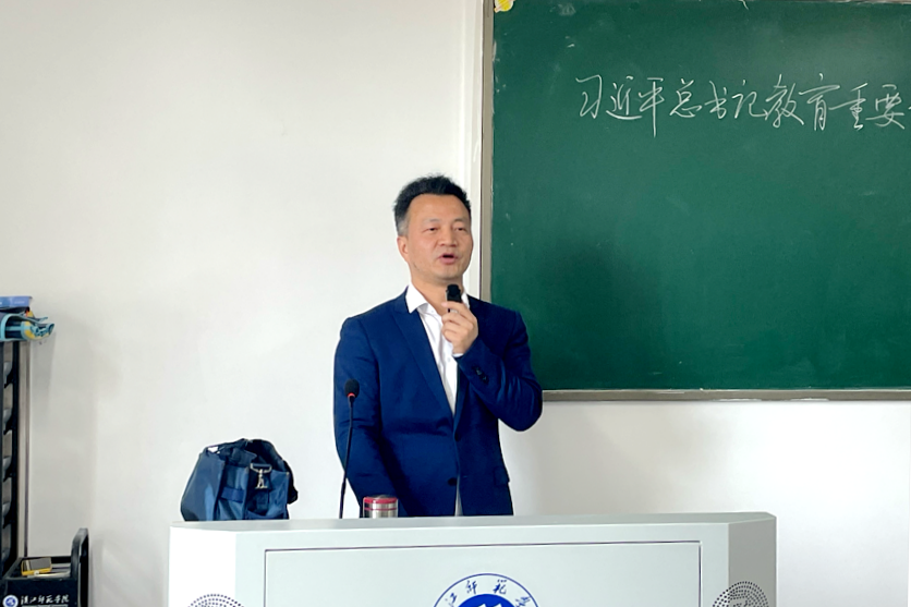 吴红斌结合《习近平总书记教育重要论述讲义》课本,围绕“新时代建设教育强国的根本遵循”“教育事业发展的‘定海神针’——坚持党对教育事业的全面领导”两个方面,为同学们详细讲述了习近平总书记教育重要论述的时代背景、科学内涵和重大意义,深刻阐释了中国共产党对教育事业全面领导的历史必然性和现实要求。