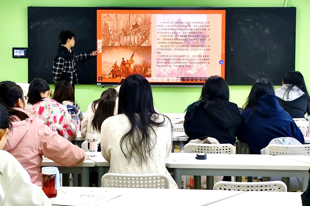 近日的思政2202班迎来了一堂特殊的“思政课”。经过前期的认真准备,全班同学分小组上台展示成果,授课教师李媛再结合教学重点进行辅导和点评,引导带领员工发挥学习主体作用,形成“学”“思”“践”“悟”特色教学模式。