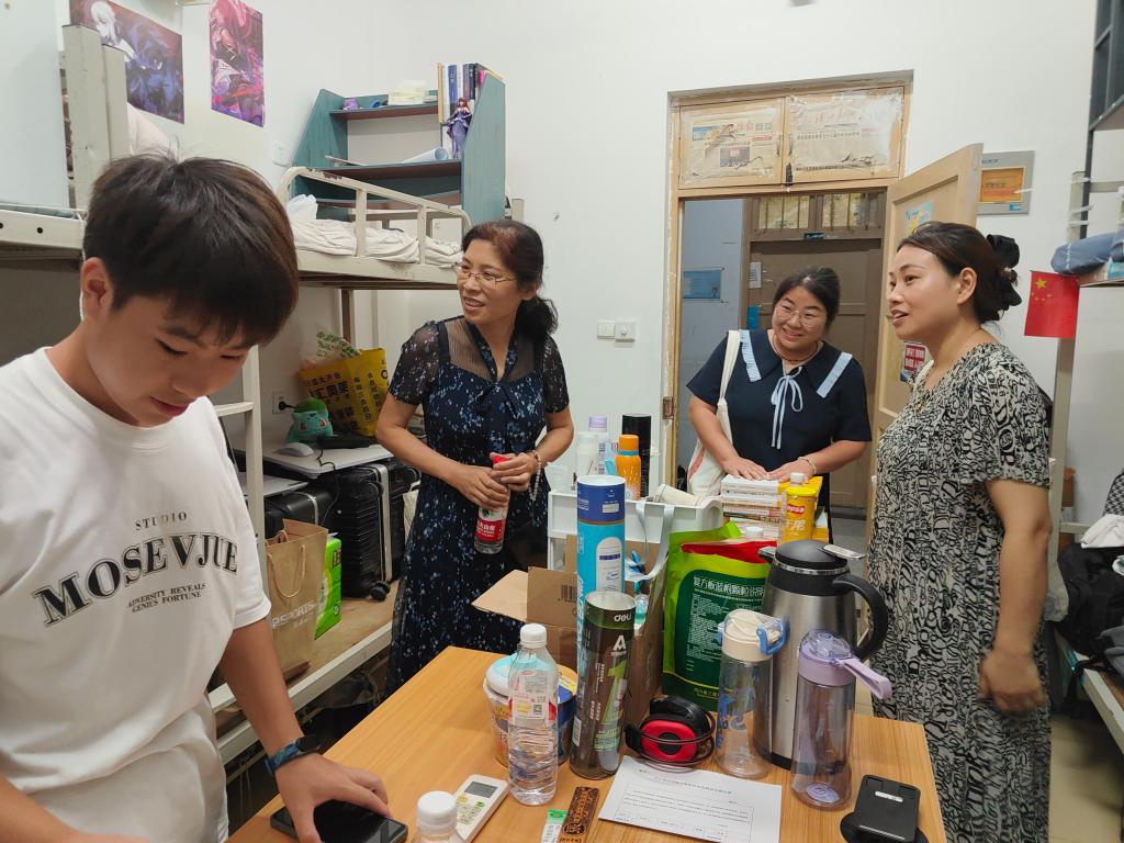 晚点名后,分党委书记王襄渝、副书记张玲带领辅导员、班主任走访员工宿舍,与同学们亲切交流,询问同学们在暑假期间的学习和生活中遇到的问题,关心同学们的日常作息和身心健康,并就寝室卫生和安全情况进行提醒。
