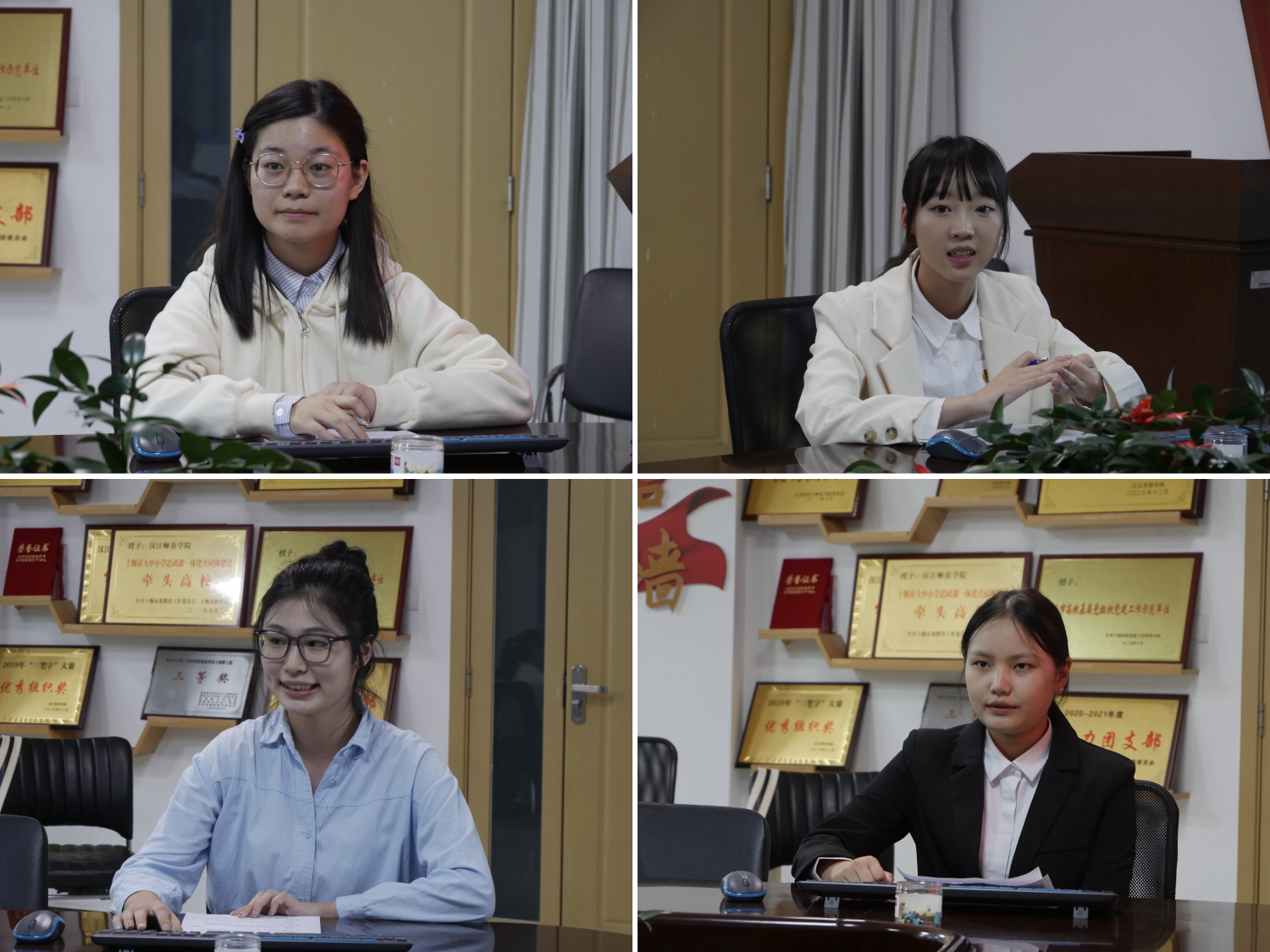 经过公开报名、资格审查、量化考核,确定周煌、张佳玲、孙雨轩、王家乐、徐向阳五名候选人参加此次答辩。此次答辩会由个人展示和评委提问两个环节组成。答辩过程中,五位同学立足自身优势,就思想政治、学业成绩、学术成就、社会实践等方面进行了展示。在问答环节,同学们结合自身经历,回答条理清晰,逻辑严密,自信从容,展示出了公司学子昂扬向上、拼搏奋进、追求卓越的风貌。