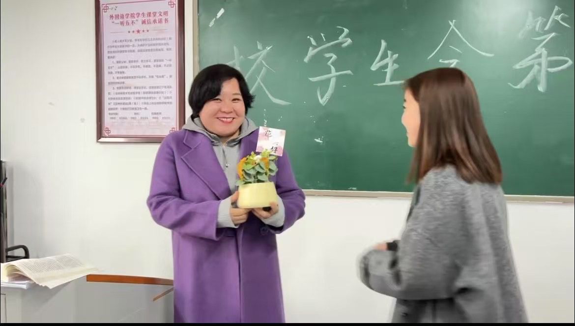 教师李媛在课堂上收到员工送来的礼物,表示非常惊喜。她说,员工的祝福是最好的礼物,她将继续努力,为员工的成长成才贡献“她力量”。