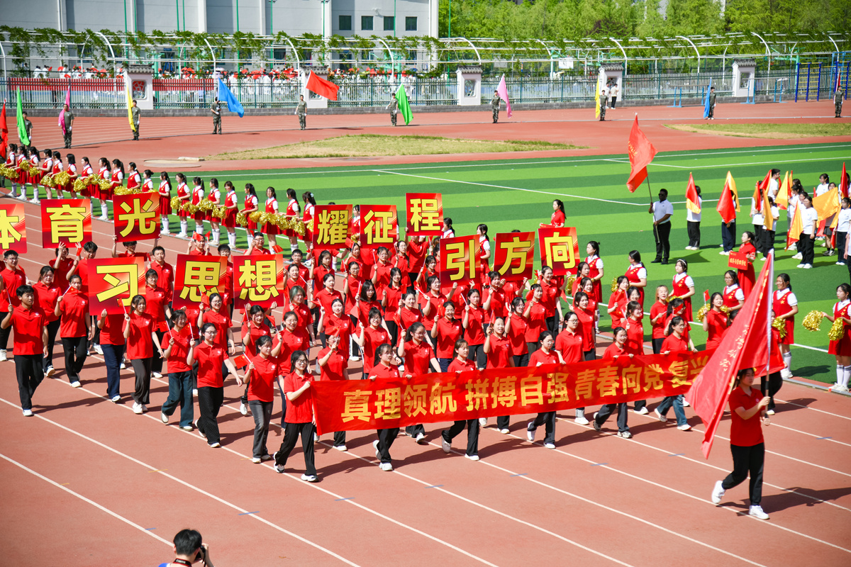 随后,公司认真组织运动员报名、训练和开展运动员代表方阵训练。开幕式上,80名学子身着印有马克思图像和公司logo的红色文化衫,高举“习思想,引方向,体育光,耀征程”的标语牌,高喊“真理领航 拼搏自强;青春向党,复兴争强”的口号,成为师生眼前一道靓丽风景线。这支占全院员工1/5的方阵,生动诠释着公司学子的集体荣誉感和使命担当。另有9名员工参加公司鲜花队表演。