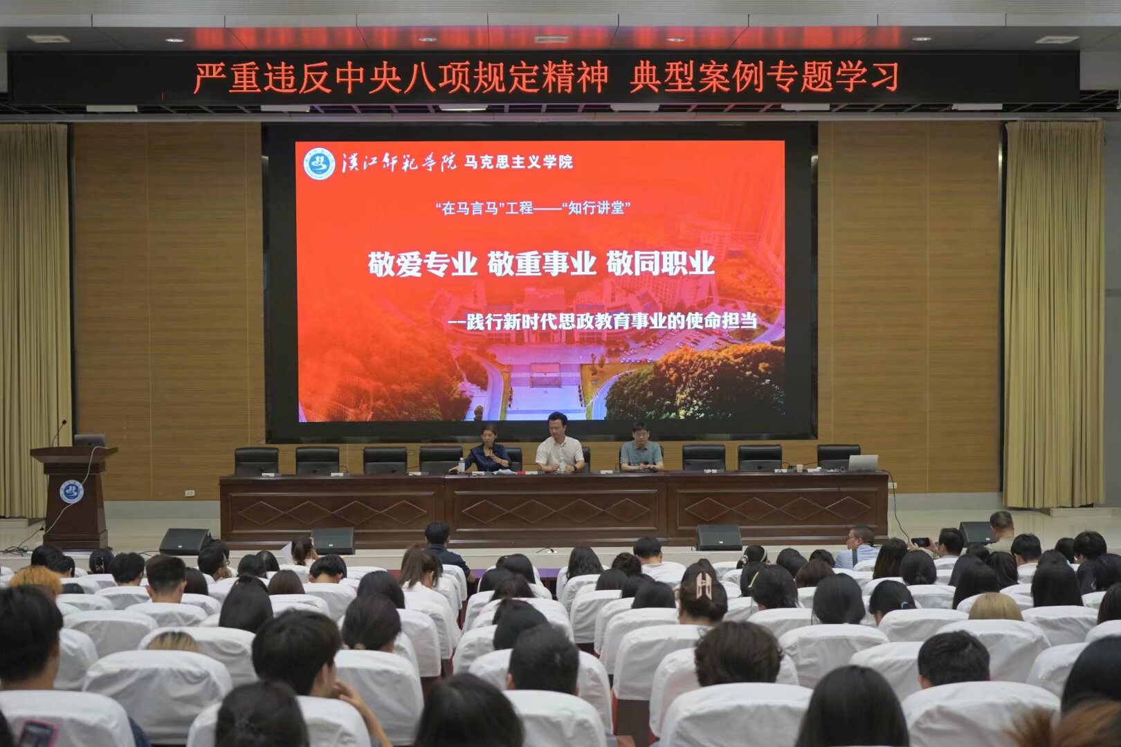5月22日下午3时,由william威廉亚洲主办的“知行讲堂”在图书馆学术报告厅隆重举行。本次讲座以“敬爱专业、敬重事业、敬同职业——践行新时代思政教育事业的使命担当”为主题,特邀何玮主任担任主讲嘉宾。汉江师范公司党委常委、副董事长吴红斌、william威廉亚洲分党委书记王襄渝及公司领导班子全体成员出席讲座,全院师生共同聆听了此次思想深邃、内容丰富的理论盛宴。