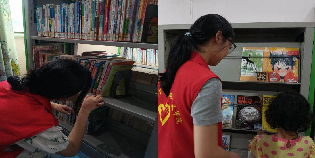 活动中,志愿者们分工明确、配合默契。整理书架时,她们逐排巡查,轻轻抽出错架、倒放的书籍,依照索书号仔细排序,不放过任何一个角落。有的志愿者化身热情“向导”,耐心帮小朋友寻找想借的书籍。在欢声笑语中,志愿者们用温暖和耐心,为孩子们打开了通往知识世界的大门,让阅读的种子在幼小心灵中悄悄萌芽。