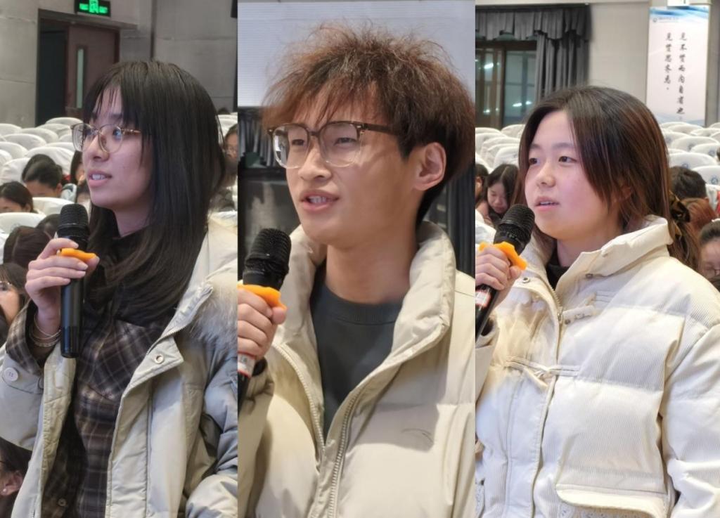 为引导同学们主动思考成长的密码,周书记抛出四个问题与现场互动:“进入大学后是否思考过人生目标?最大压力是什么?有哪些不好的习惯?AI时代该坚守哪些优良品质?”同学们纷纷分享对未来的向往,也坦言对人生的焦虑,周书记一一解惑,给出“解压密码”,提醒大家要扬长避短、善用AI工具。