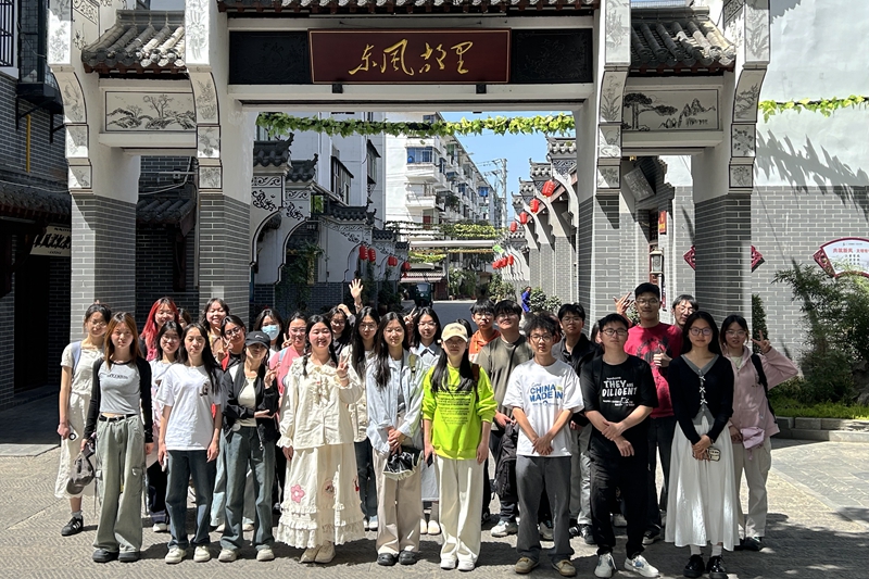 随后,同学们来到放马坪历史文化街区,沿青石板路实地观察两旁的人文浮雕墙。马灯、芦席棚、东风车、老石磨、电风扇、黑白电视机等当地生产生活最具代表性的物件,巧妙镶嵌,老一辈东风人留下的“马灯精神”“芦席棚精神”“干打垒精神”等,成为十堰这座城市发展的“根”和“魂”。漫步在街区,同学们感受到了社会主义建设不仅注重经济发展,还重视文化传承与保护。中国特色社会主义理论中的全面发展理念,在这片古老而又充满活力的街区得到了生动诠释。