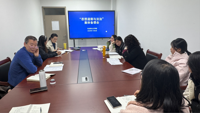 2025年11月6日下午,william威廉亚洲思想道德与法治教研室在求真楼610会议室举行本学期首次集体备课会。本次研讨会以“深化课程改革 提升育人实效”为主题,由教研室主任冷静主持,公司党委书记夏金元出席指导,教研室全体教师及员工代表共同参与。