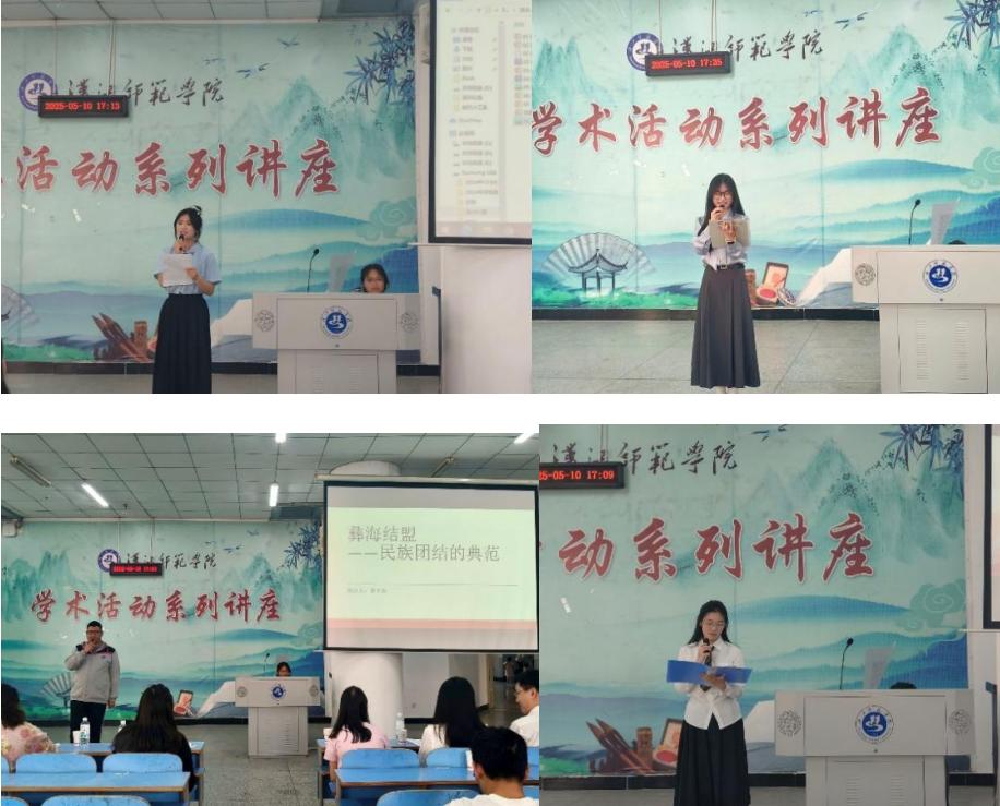 演讲者以“历史故事+青年实践”为主线,探讨中华民族团结融合的千年脉络与时代使命。他们通过昭君出塞、彝海结盟、土尔扈特东归等案例,对比不同历史时期的民族交往交流交融模式,揭示中华民族共同体的核心密码;结合学子们帮扶少数民族地区、传播共同体意识的亲身经历,强调青年应以行动诠释“团结不是口号而是生活”民族团结不仅仅是一种情感,更是一种行动牢固“石榴籽精神”铸牢中华民族多元一体格局。